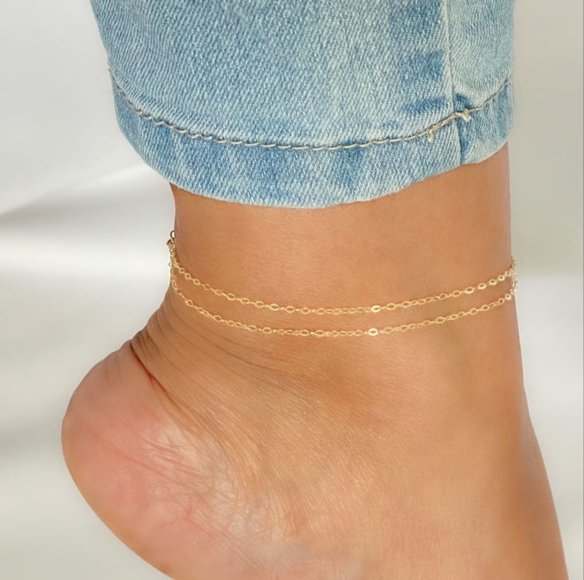 Each anklet is handcrafted with precision in 14k gold fill, sterling silver or 14k rose gold fill, offering a radiant finish that complements every step.