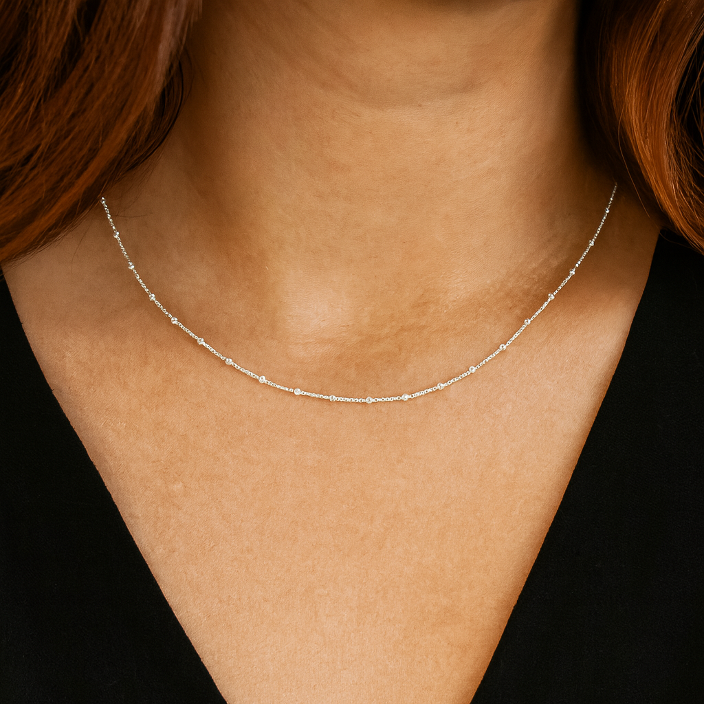 For those who prefer subtle sophistication, explore our Satellite Chain with its graceful beaded detail or our ‘Barely There’ Fine Bella Chain crafted for an effortless, light-catching shimmer that feels as delicate as it looks.