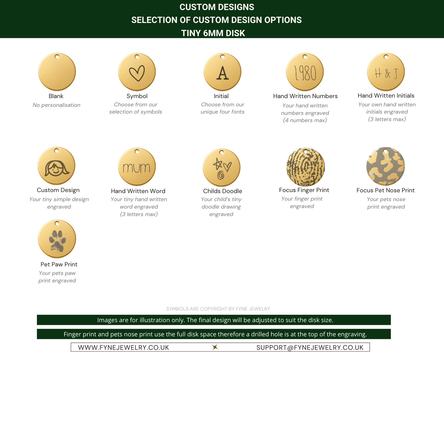 It features a dainty 6mm disk that can be customised with your choice of engraving, from a fingerprint or your child’s tiny doodle to an initial or meaningful symbol.