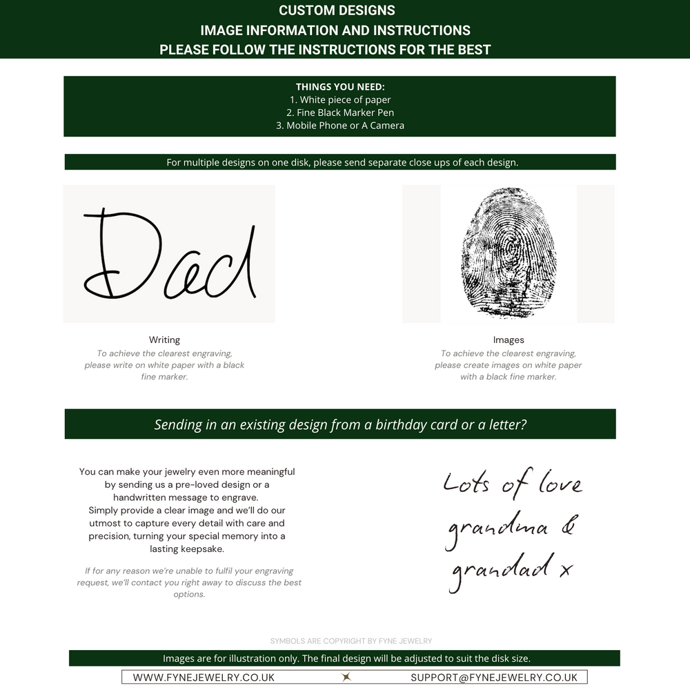 Please note that we try our utmost best to perfectly align engraving letter(s) or symbol(s) in the centre but some results may vary.