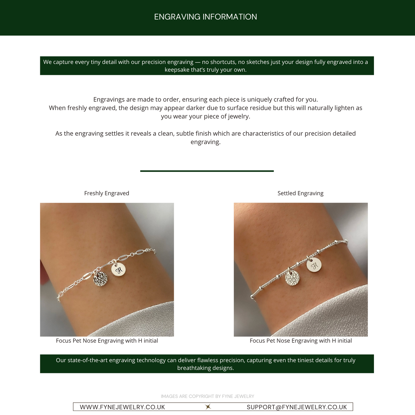 The heart can be personalised with an initial or number or made truly special with a custom fingerprint or pet nose print, capturing a moment, a memory or a bond that lasts forever.