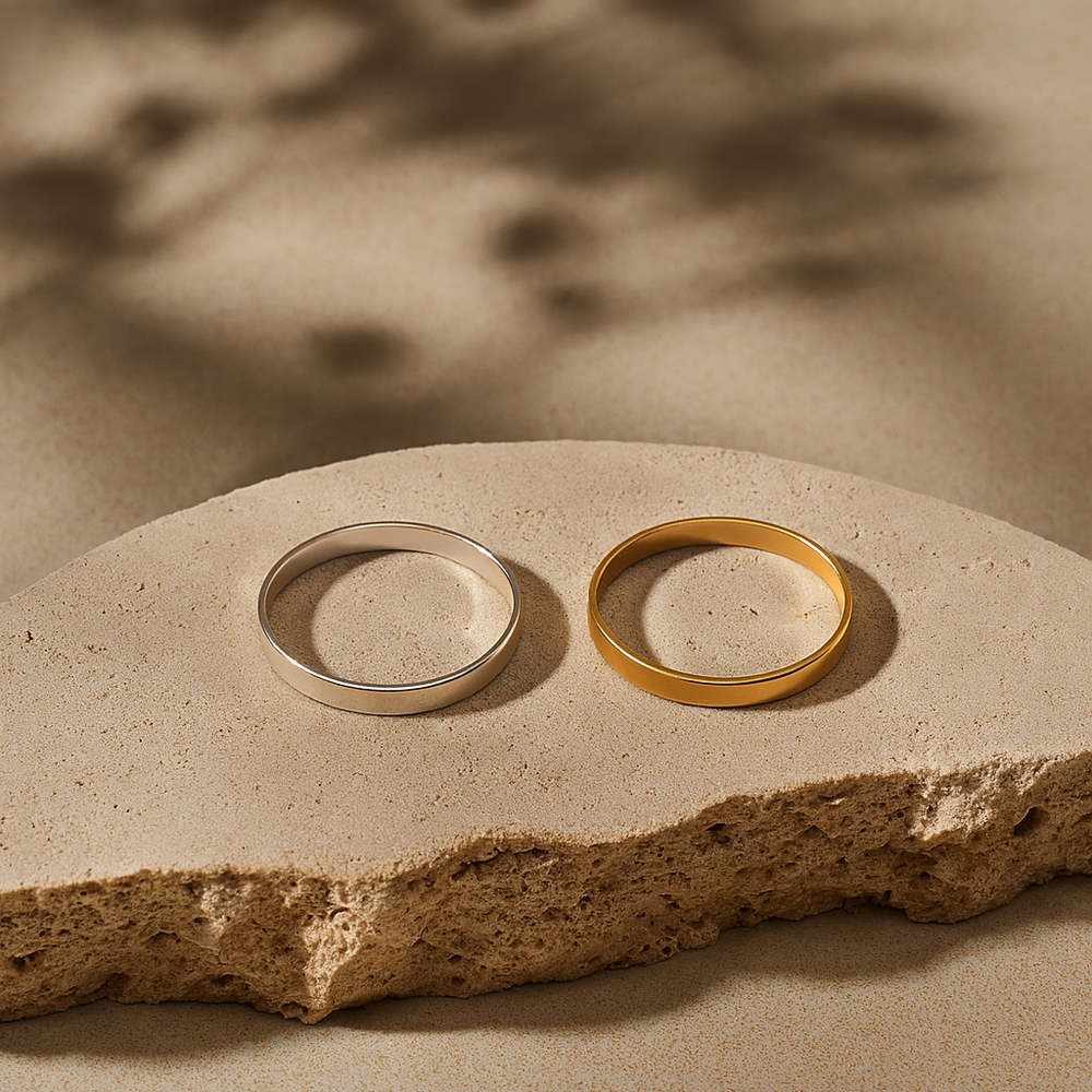 Its smooth polished finish and graceful profile make it perfect as a wedding band, a stacking ring or a minimal everyday piece.