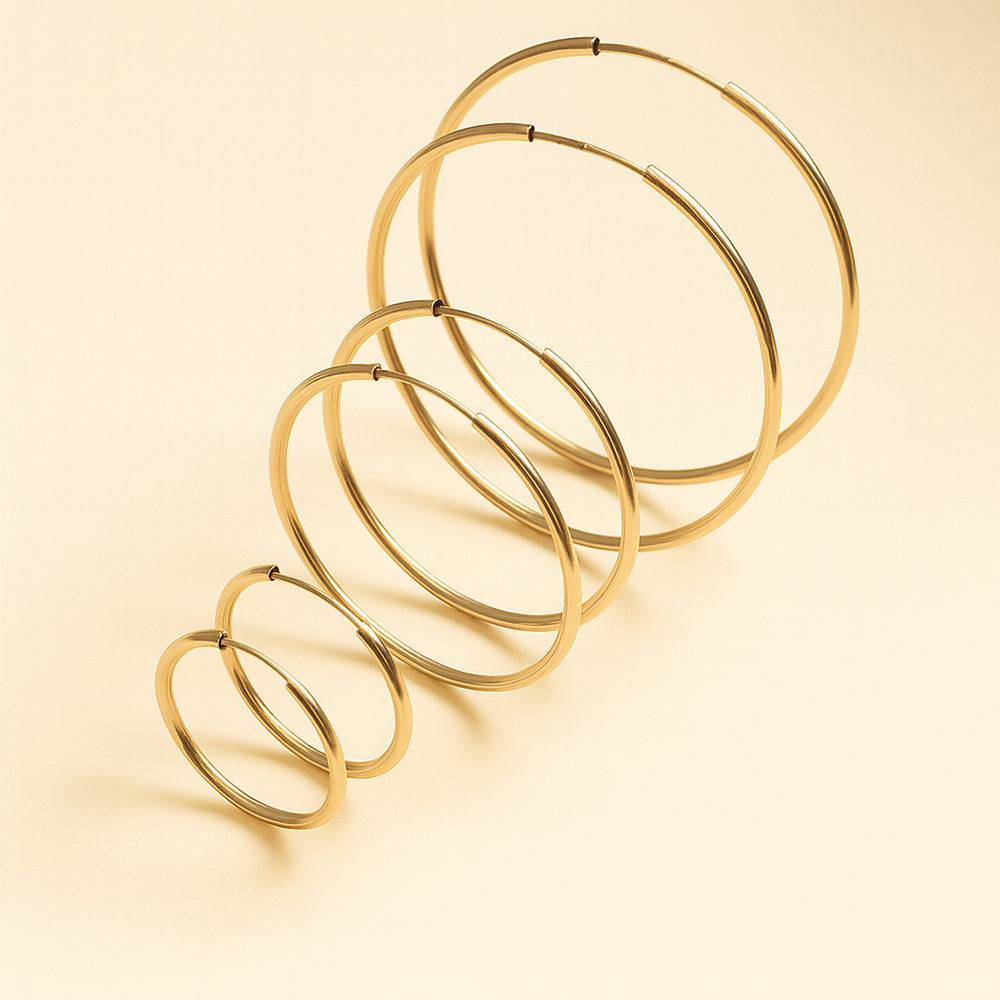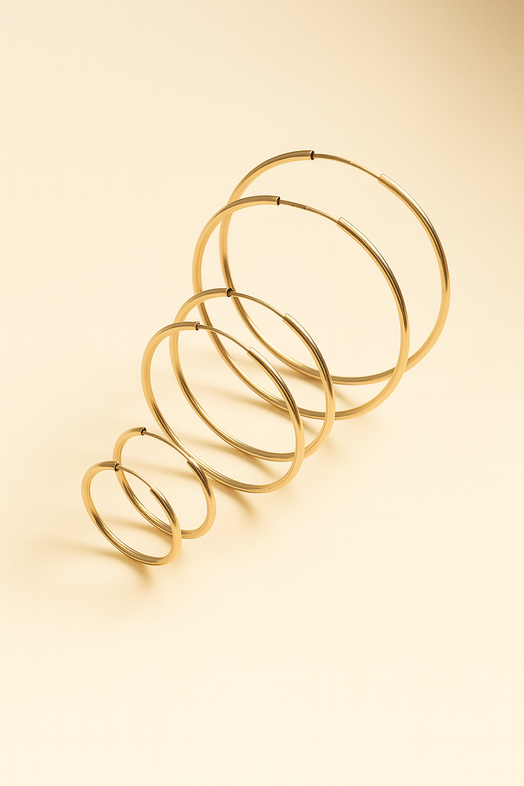 Elegant and simple smooth plain gold earrings. Unique hoop design, these earrings will be perfect for styling up with your favourite earrings.